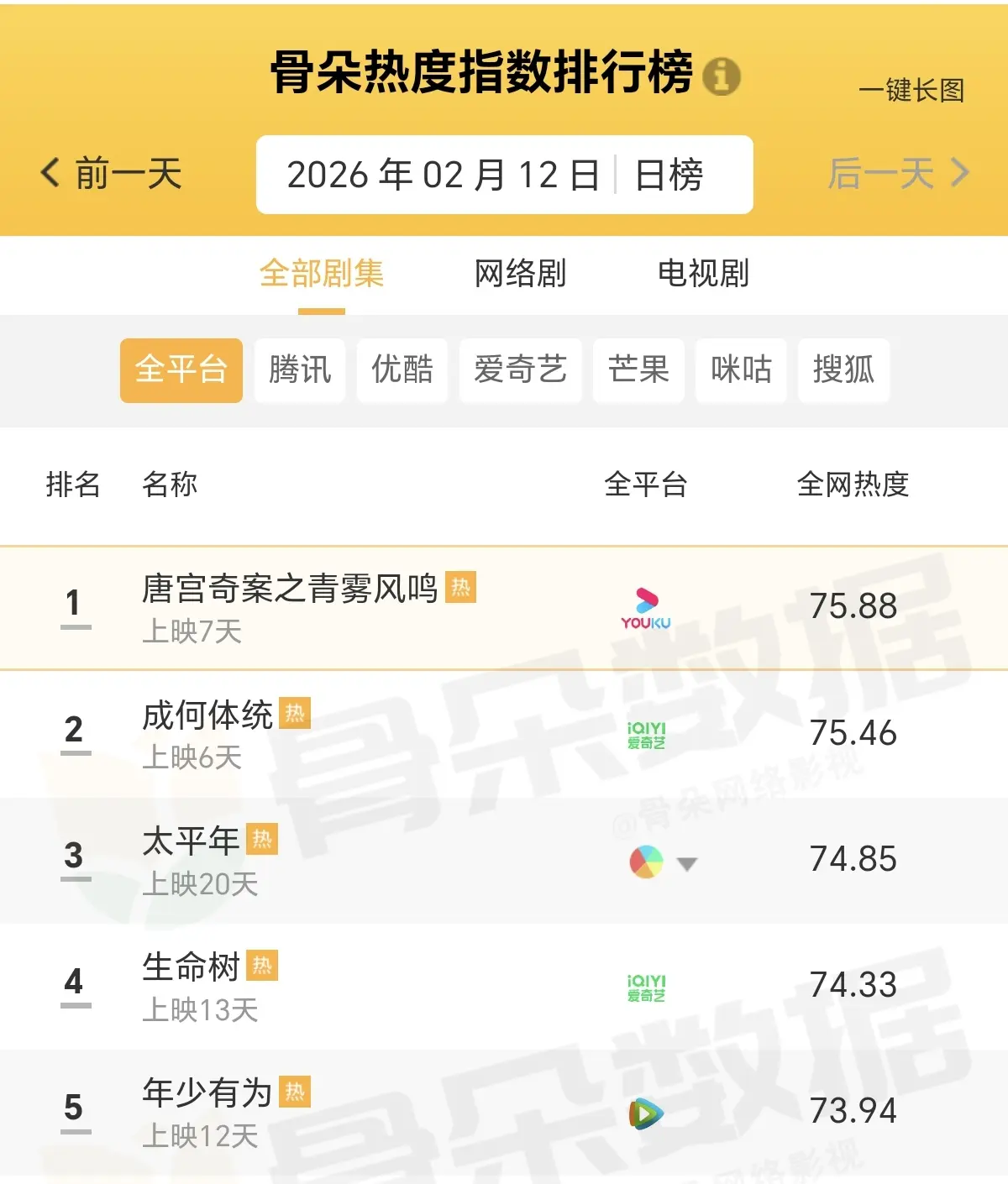 电视剧全网热度榜,你在追哪一部?码字不易,迎接原宥点赞,留言筹商!