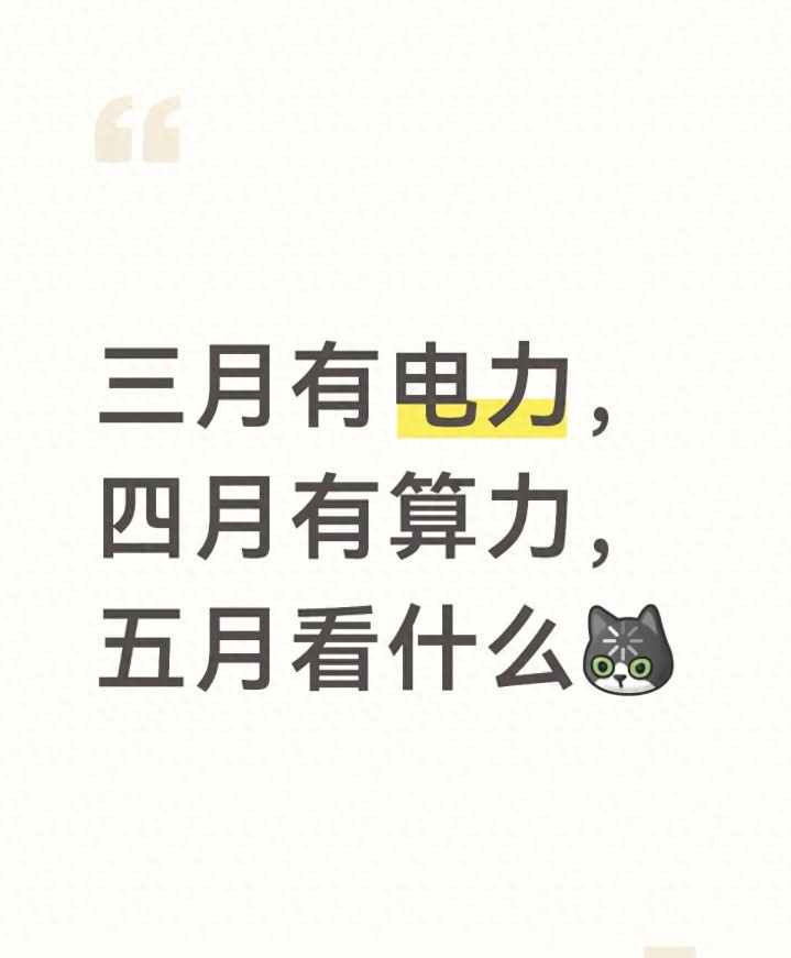 在A股摸爬滚打快十年,我最久了的感受是,热门轮动比季节变换还快。开年全球还在聊铺张复苏,三月画风突变,电力板块一骑绝尘,特高压、绿电唯有沾边就涨;到了四月,死力棒交到算力手上,光模块、液冷、行状器成了资金骄子,仿佛不聊AI基建就跟不上节律。眼看四月就要终结,许多东谈主齐在问:三月有电力,四月有算力,那五月,咱们该看什么?