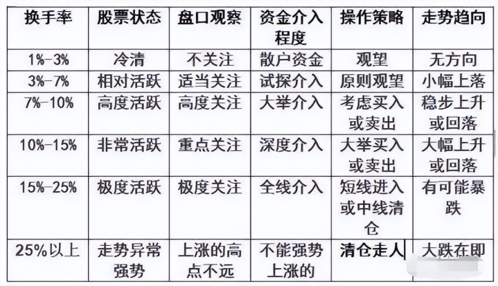 一般来讲,换手率较高的股票,常常亦然短线资金追赶的对象,投契性较强,股价周折较大,风险也相对较大。以下是一个日换手率的参考数据表: