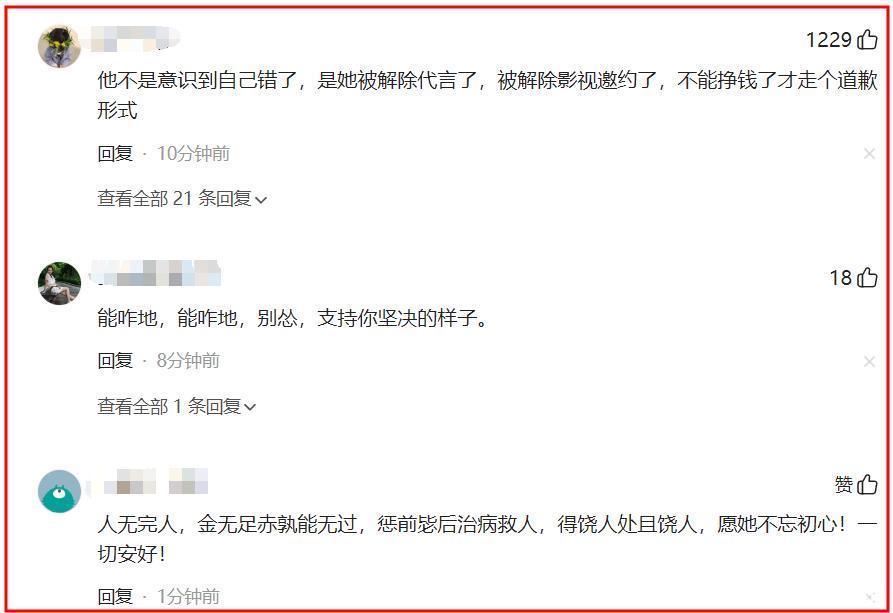 关于她的说念歉,网友们并不买账,直言她不是意志到错了,而是怕了,怕没钱赚了。