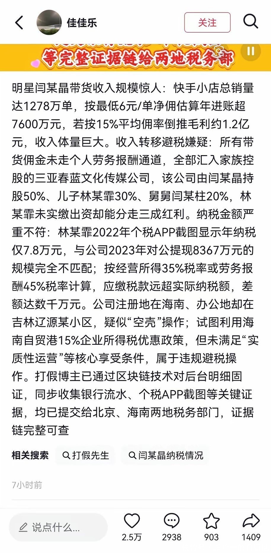 有打假博主怀疑她的税务有问题,质疑她偷漏税。