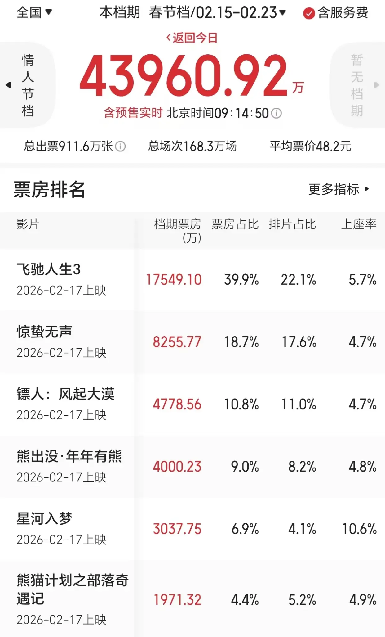 本年的春节档共有六部新片定档,且皆早在几天前就仍是开启了预售。