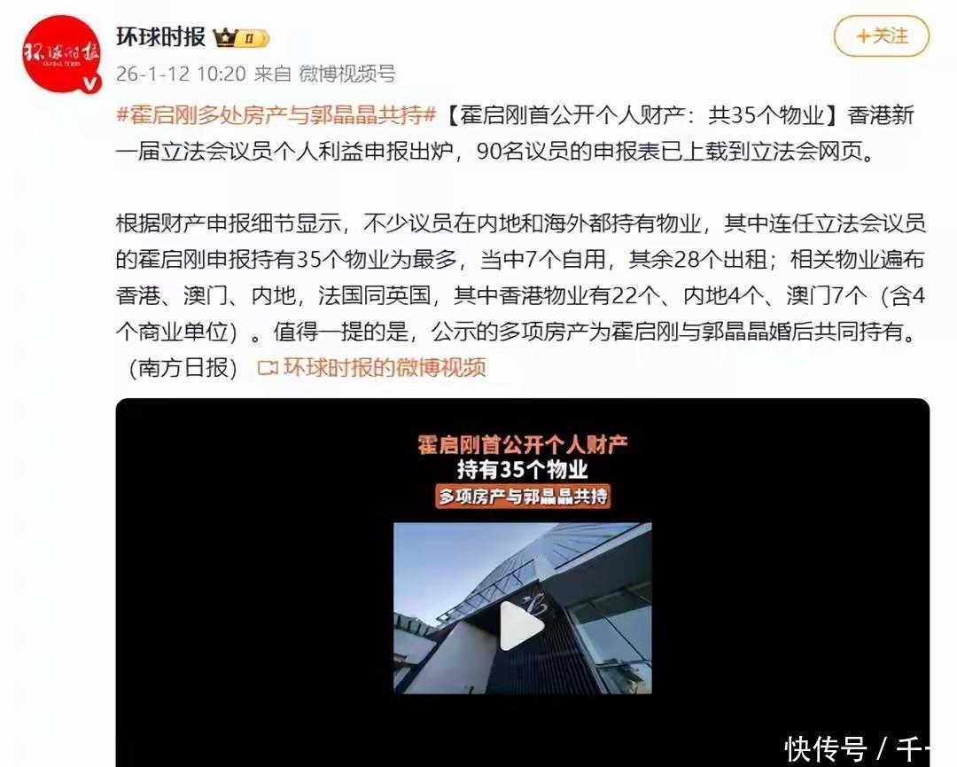 2026 年 1 月,香港立法会官网更新议员财产讲演信息,霍启刚按法则公开个东说念主财产清单,这一公开,径直在网上炸开了锅!他名下尽然有 35 项物业,这疆域横跨全球啊,香港 22 套、澳门 7 套、内地 4 套,英法还各有一套。其中 7 套私用,28 套对出门租,光年房钱保守猜测就超千万港币,网友都忍不住辱弄:“霍启刚这是要当全球包租公的节拍啊!”