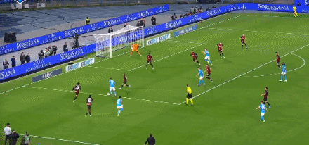第79分钟,那不勒斯左路进击,阿利松·桑托斯盘带分球,奥利维拉跟进下底传中,门前米兰后卫阿特卡梅突围灭顶远,后点波利塔诺跟进小角度破门,打进全场独一进球。