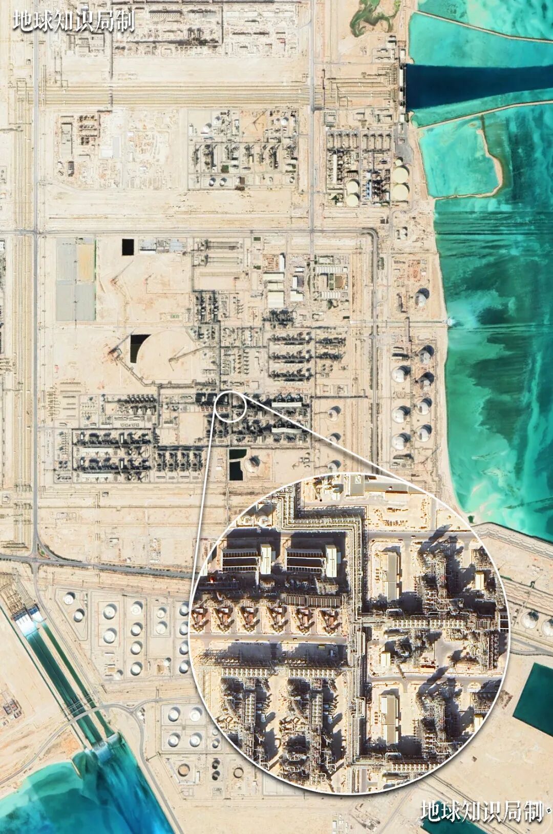 一座极为复杂弘大的工业重镇,自然气/氦气储运、海水淡化、发电、造船...