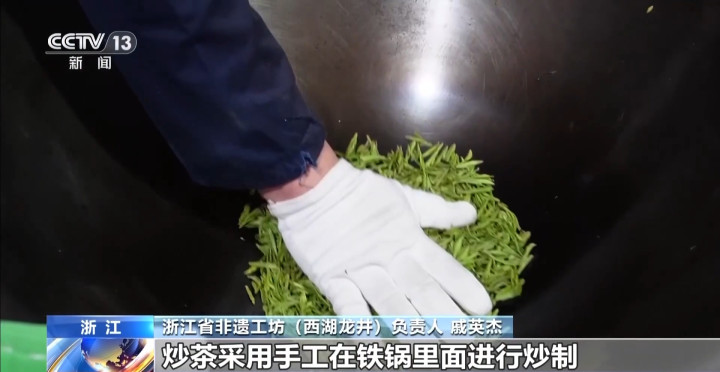 浙江省非遗工坊(西湖龙井)讲求东说念主戚勇士:炒茶剿袭手工在铁锅内部进行炒制。锅温终点高,有200多摄氏度,是咱们千百年来龙井制茶东说念主一代代改进、校正的,把它传承下来的工艺。