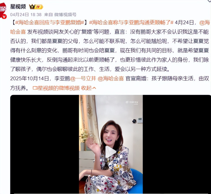 濒临漫天掩地的传说,海哈金喜莫得礼聘千里默阴私,也莫得拖沓其辞,而是主动下场陈述,视频里的她,景色轻松、口吻坦诚,把统统疑问一次性说透。她直言:“咱们都是夏夏的父母,若何可能不估量呢?也不会难熬,反倒咱们当今相易比夙昔更顺畅了”,一句话解释了两东谈主时时同框的原因,也冲破了“离异即仇东谈主”的刻板印象。